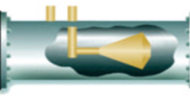 ▲ 宽量程、低压损:由于其输出差压信号稳定,使得差压量程下限远比一般差压计低,使量程下限扩展,量程比一般为10︰1,由于流体流经锥体时比较平稳,因此其压损非常小(接近文丘里流量计)。