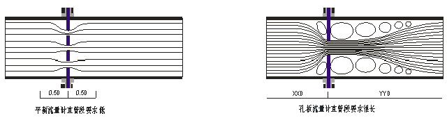 ▲ 直管段长度: 上游:L1 = 3D 下游:L2 = 1D, 最小可达0.5D;